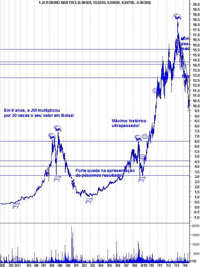 Contudo agora, e porque li o seu comentário fui ver o desempenho da acção. Não estava a par desta nova tendência da JM, e que bela queda que a acção tem tido (até parece o BES em fins de Junho).