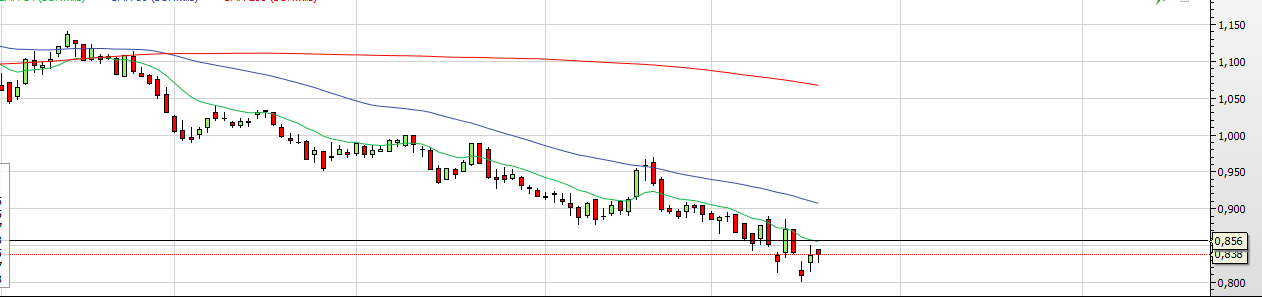 No gráfico tem batido sempre na EMA 14 que está agora nos 0.855 e voltou sempre a novos mínimos .