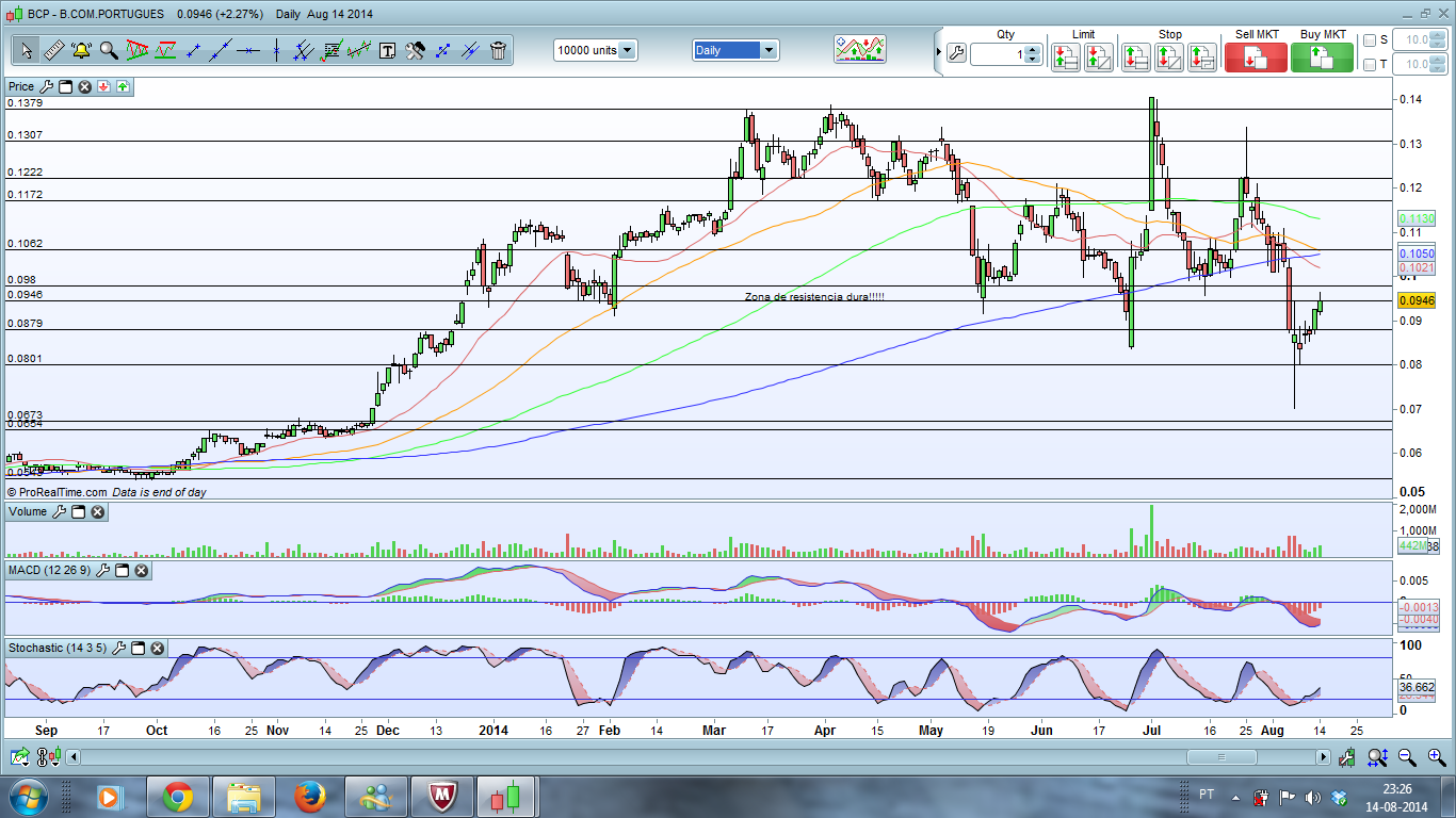 Com tudo espero que o BCP venha a subir e passe o meu preço médio 0,115 , segundo o que muitos dizem Agosto e Julho costuma a ser um meses menos bons no nosso psi20 aliado a esta crise do BES ... tivemos bomba da grande ...