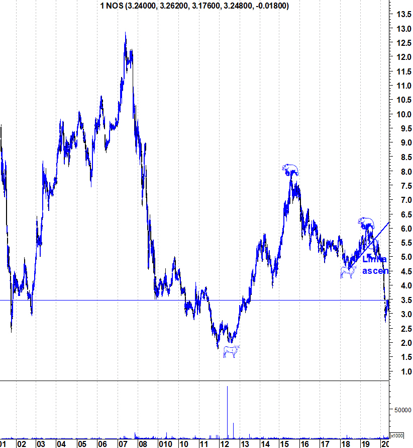 Como a NOS "detestou" o Bull market secular, talvez agora com uma recuperação MACRO e Bolsista em WWW, seja menos otimista e mais realista, esperar uma forte recuperação, em V, da cotação NOS.