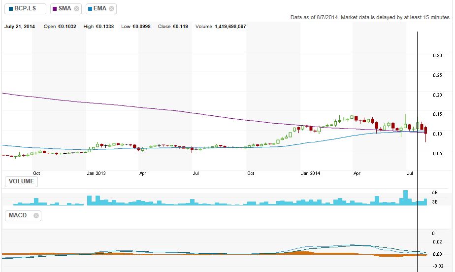 No caso do BCP, o 50 e 200 EMA seminal cruzaram na primeira semana de Julho, e e' normal um retracemente durante 1-3 meses.