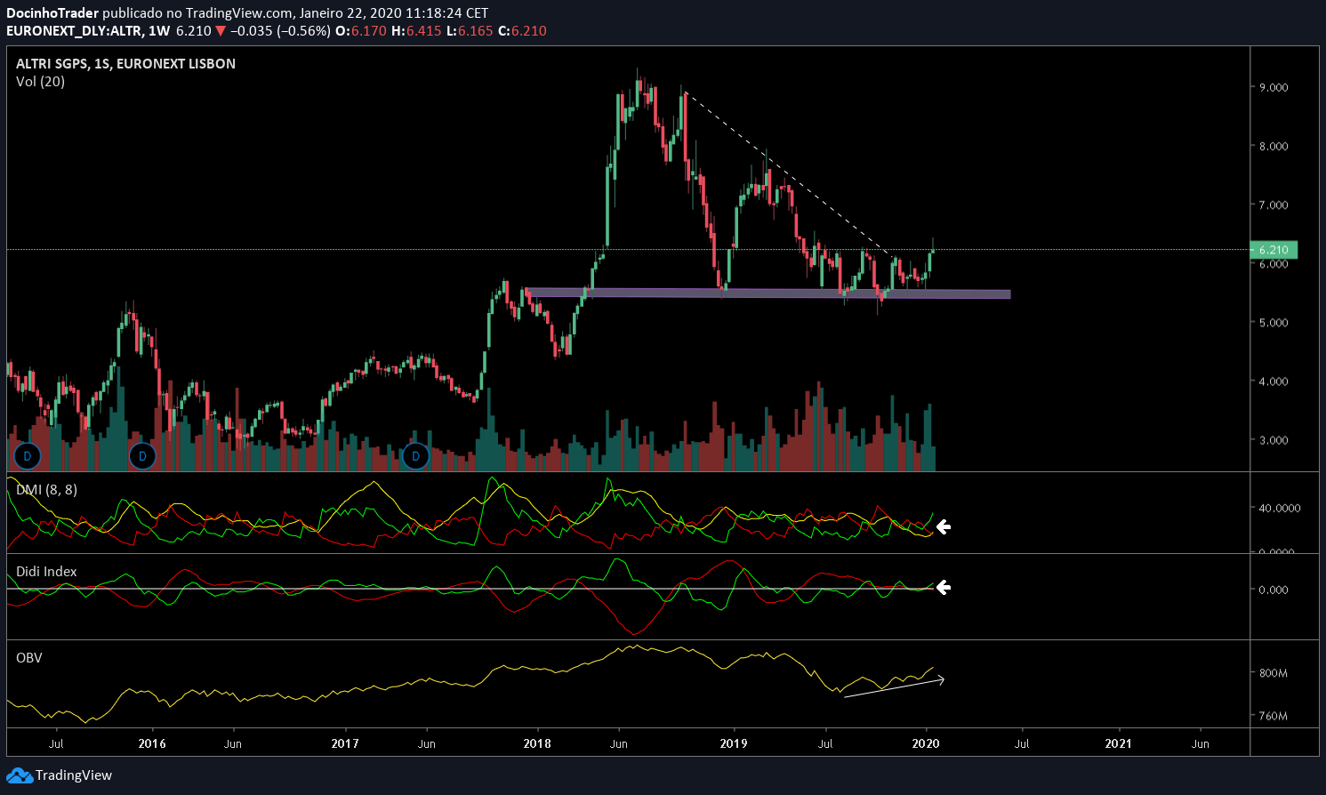 Sim, e o indicador AD, na minha plataforma, parece-me ter, no semanal, mais área positiva que negativa nos últimos meses em que o preço anda nesta zona que referi.