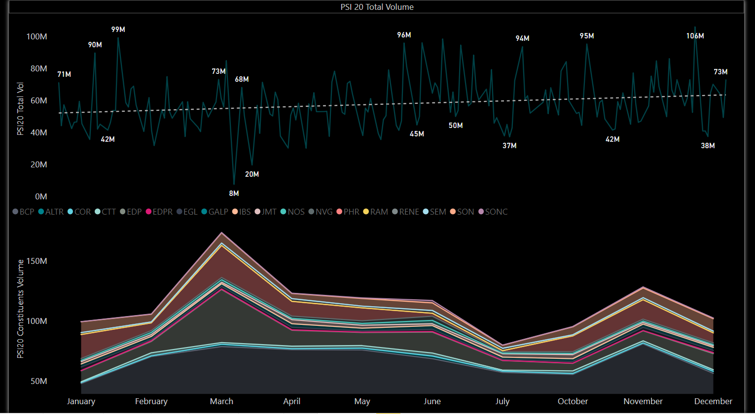 O total volume do PSI 20 tem vindo a aumentar no ultimo ano, o que é bom.