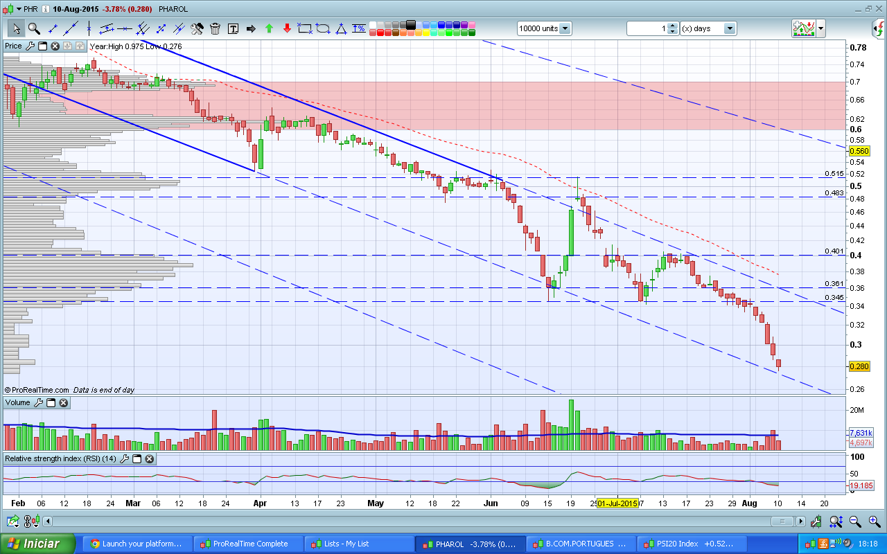 Esta é mais outra que "faliu", ou seja, quem investiu nela a médio longo prazo, há mais do que uns meses, já está a perder mais de 90%. Na prática a diferença entre quem investiu na PT e quem investiu no BES quando este faliu, é quase nula... e, como esta, há uma série de outros títulos da bolsa portuguesa nas mesas condições. Eu diria que na última década o número de títulos que caíram mais do que 90% em relação aos máximos deve aproximar-se dos 50% dos títulos que cotam na bolsa portuguesa. Não espero que isto sirva de grande consolo para os perdedores do BES, mas antes que sirva para todos refletirem sobre os perigos dos mercados de capitais...