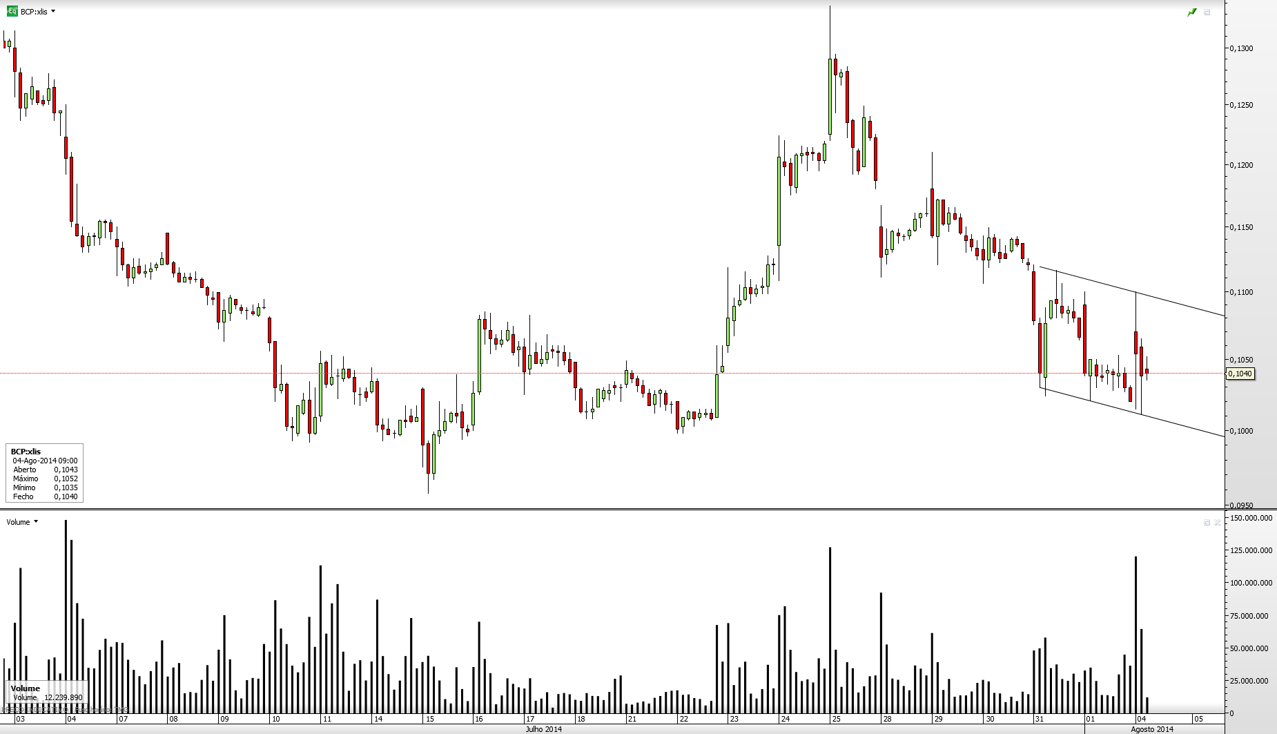 neste mês de agosto e com a situação do bes resolvida entre " ....... " como sabemos todo o cuidado é pouco, mas por norma os investidores atacam os titulos que mais apeteciveis e volateis como o caso do bcp e quem não aproveitar paciEncia a mim correu me bem mês de agosto serábom para intraday vamos ver assim espero bons trades