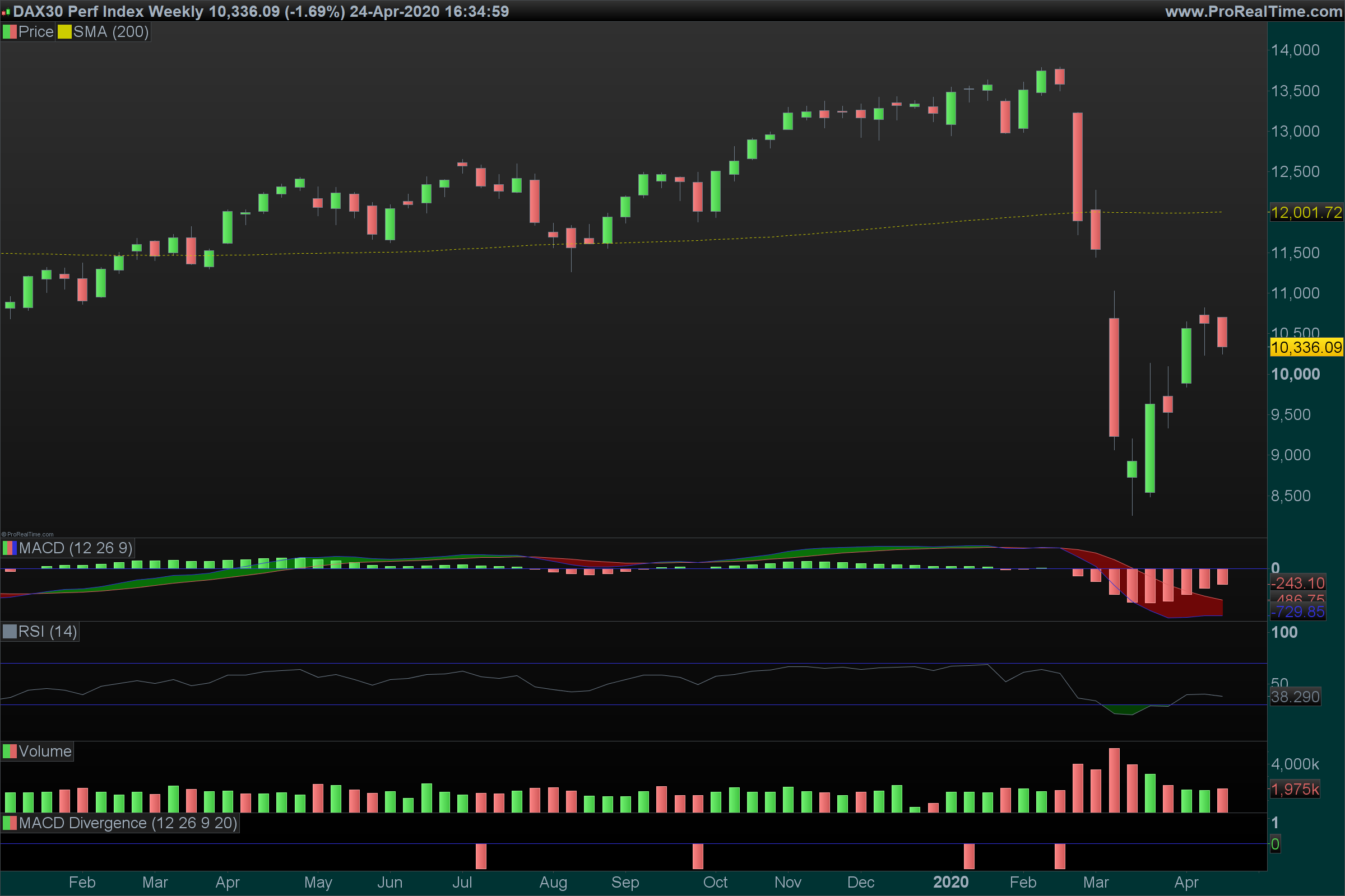 O bear market será como LL e LH e com cotações abaixo da MM200 semanal. Agora poderia ser o caso de termos um DAX bear market e os USA a continuar o bull.