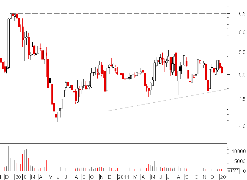 para mim as principais referências técnicas são em primeiro lugar aquela zona de resistência pelos 5.2 euros; um euro abaixo - pelos 4.2 - existirá suporte