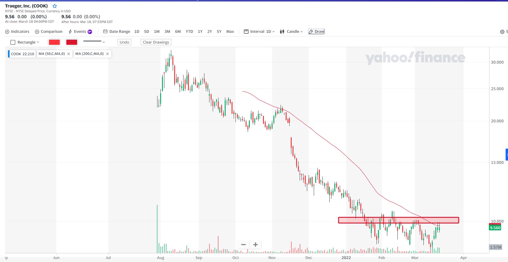 O plano de trading é o mesmo. Esperar. Não esperar por Godot como na peça de teatro, mas esperar pela quebra em alta dos níveis de resistência identificados. Por volta dos 6$ no caso da Honest, por volta dos 10$ no caso da Traeger.