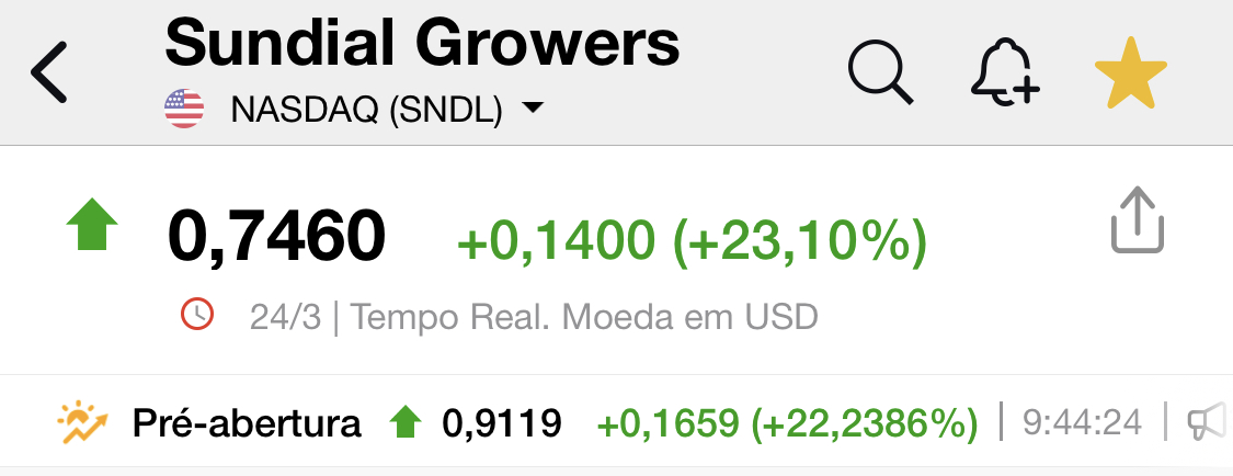 J_Investidor Escreveu:BearManBull Escreveu:XxxTOP GUNxxX Escreveu:SNDL já sobe 22% no pre-market $ 0,91
