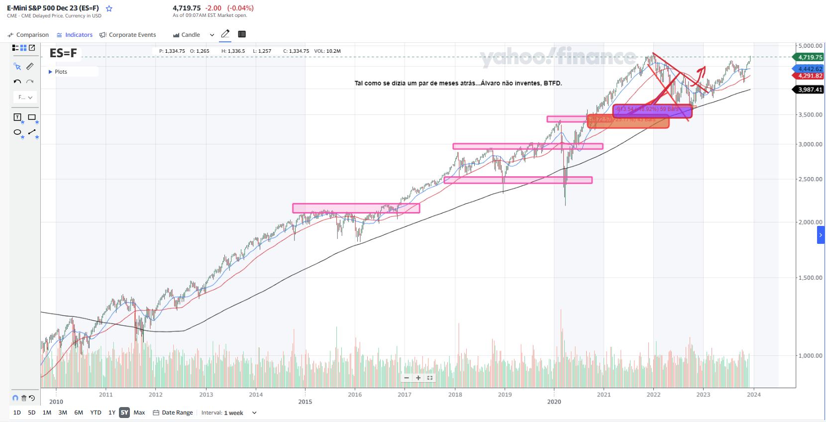 Juntando estes fatores todos ao facto de estarmos próximos do mês de janeiro, onde tradicionalmente ocorre o Christmas rally de subidas cíclicas, provavelmente na MHO só deveremos ter uma correção séria dos mercados precisamente na altura de janeiro / fevereiro do próximo ano.