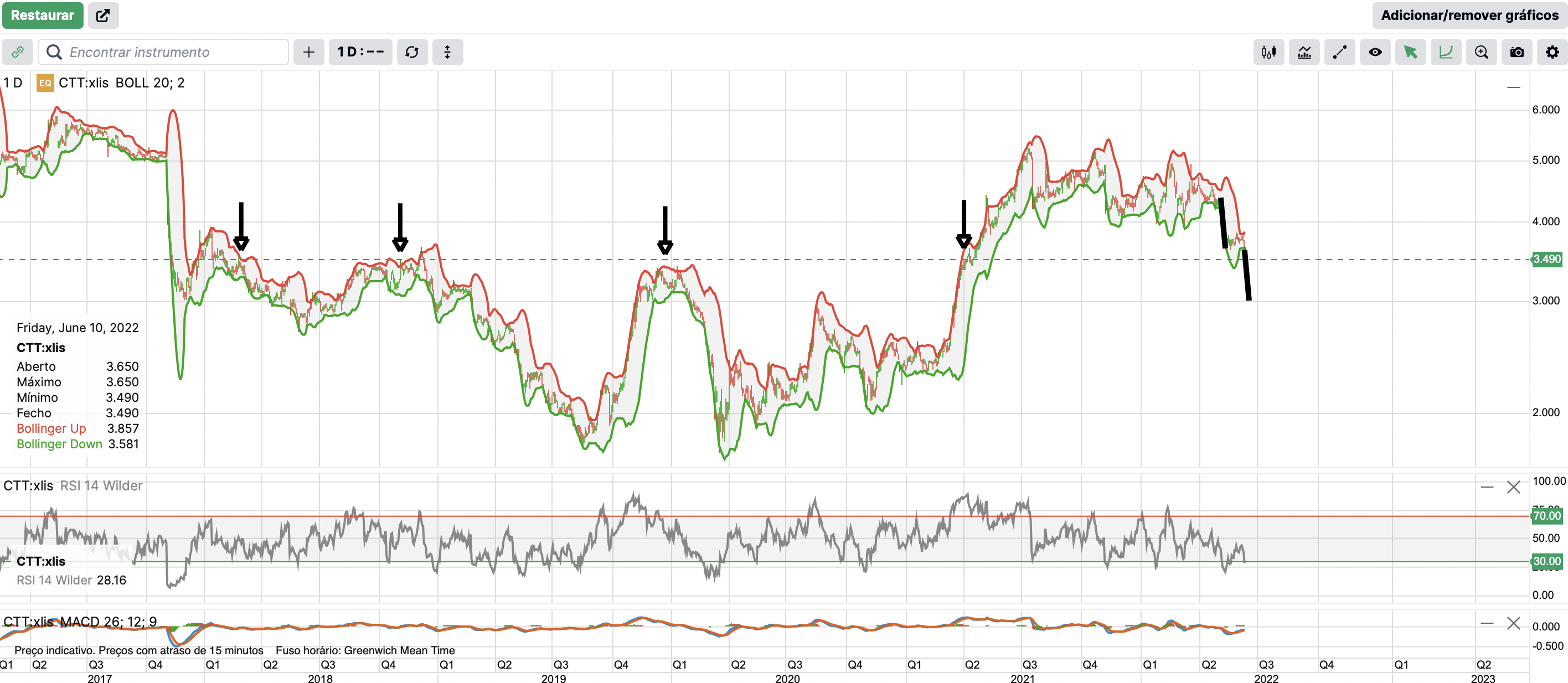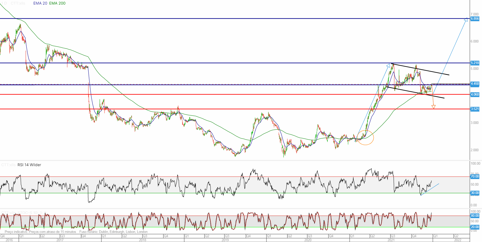 possível LEG DOWN no diário com o preço a voltar abaixo da zona dos € 3