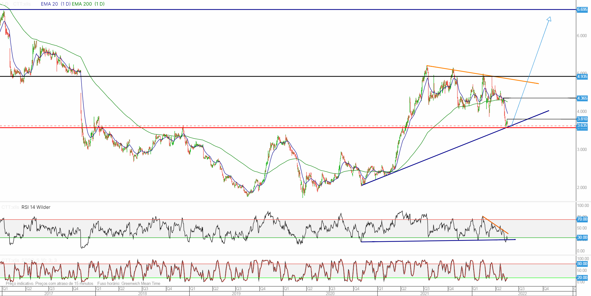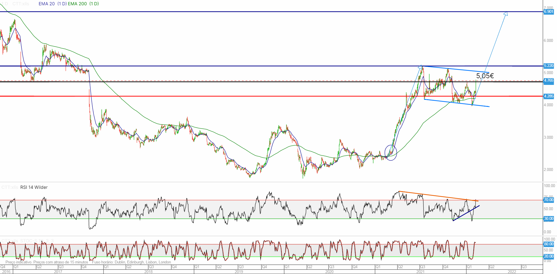Alguns dias depois da consolidação, tentativa de minibreakout nesta zona, vamos ver se tem força para chegar aos 4 / 4,10, é uma das poucas que ainda não subiu nesta fantástica leg up no PSI