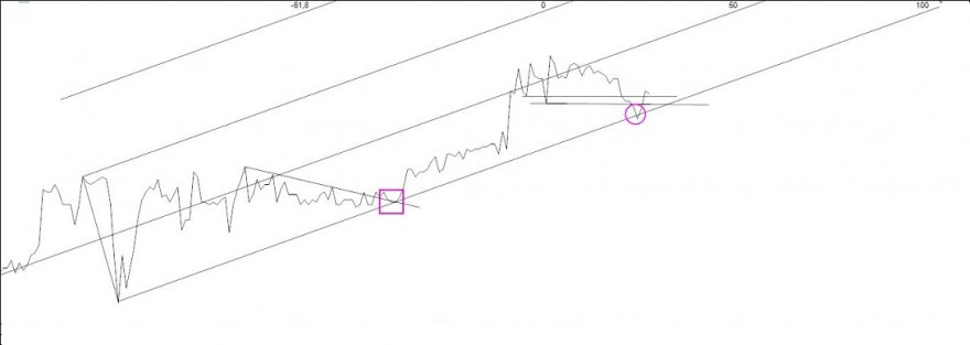 Com a mesma data coloquei um gráfico da cx. Durante este tempo tem-se estado à espera do sinal de compra. Pela reacção do preço à median line pode não estar longe.