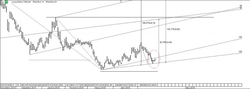 Quem shortou com base no bearish gartley deve equacionar o encerramento da posição por se ter atingido o target.