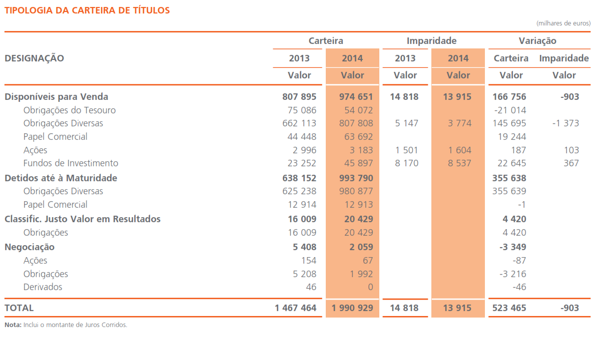 o 1,8 mil milhões em obrigações, quase na totalidade com rating inferior a BBB- (pois, tudo na classe “lixo”), e desses, 1,5 mil milhões são obrigações emitidas pelo banco (CEMG).