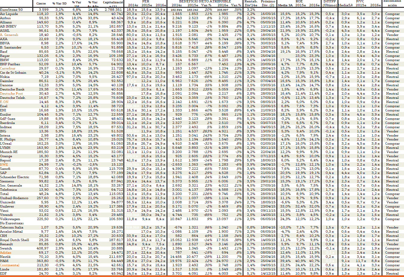 PCM, Bom dia, uma frase habitual nos mercados norte Americanos é "don't fight the FED". Na eurozona, com 60 mil milhões/Mês para "injectar" deveria ser "don't fight the ECB". Euro em mínimos de 12 anos representa uma oportunidade histórica para a indústria exportadora e para os serviços de multinacionais Europeias, garantindo desde já o maior crescimento trimestral (2015), do PIB na eurozona desde há 5 anos. Dax, IBEX35, footsie MIB, psi20 e o stoxx50 são os Índices benchmark deste Bull market nas pró-cíclicas Banca/seguros, Construção, Serviços e Indústria.