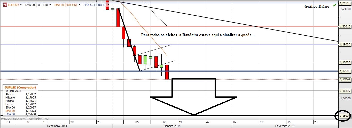 Se ninguém previa uma queda tão repentina e de tamanha dimensão no EURUSD pela manhã, a verdade é que também estava uma Bear Flag bem visível no Gráfico Diário que sinalizava o fenómeno...