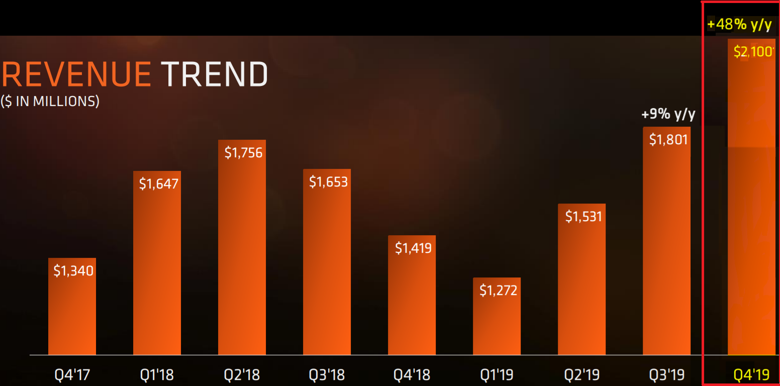 AMD (NASDAQ:AMD) today announced revenue for the third quarter of 2019 of $1.80 billion, operating income of $186 million, net income of $120 million and diluted earnings per share of $0.11. On a non-GAAP(*) basis, operating income was $240 million, net income was $219 million and diluted earnings per share was $0.18.