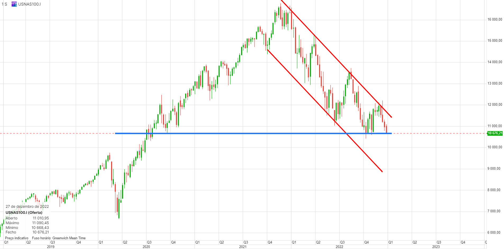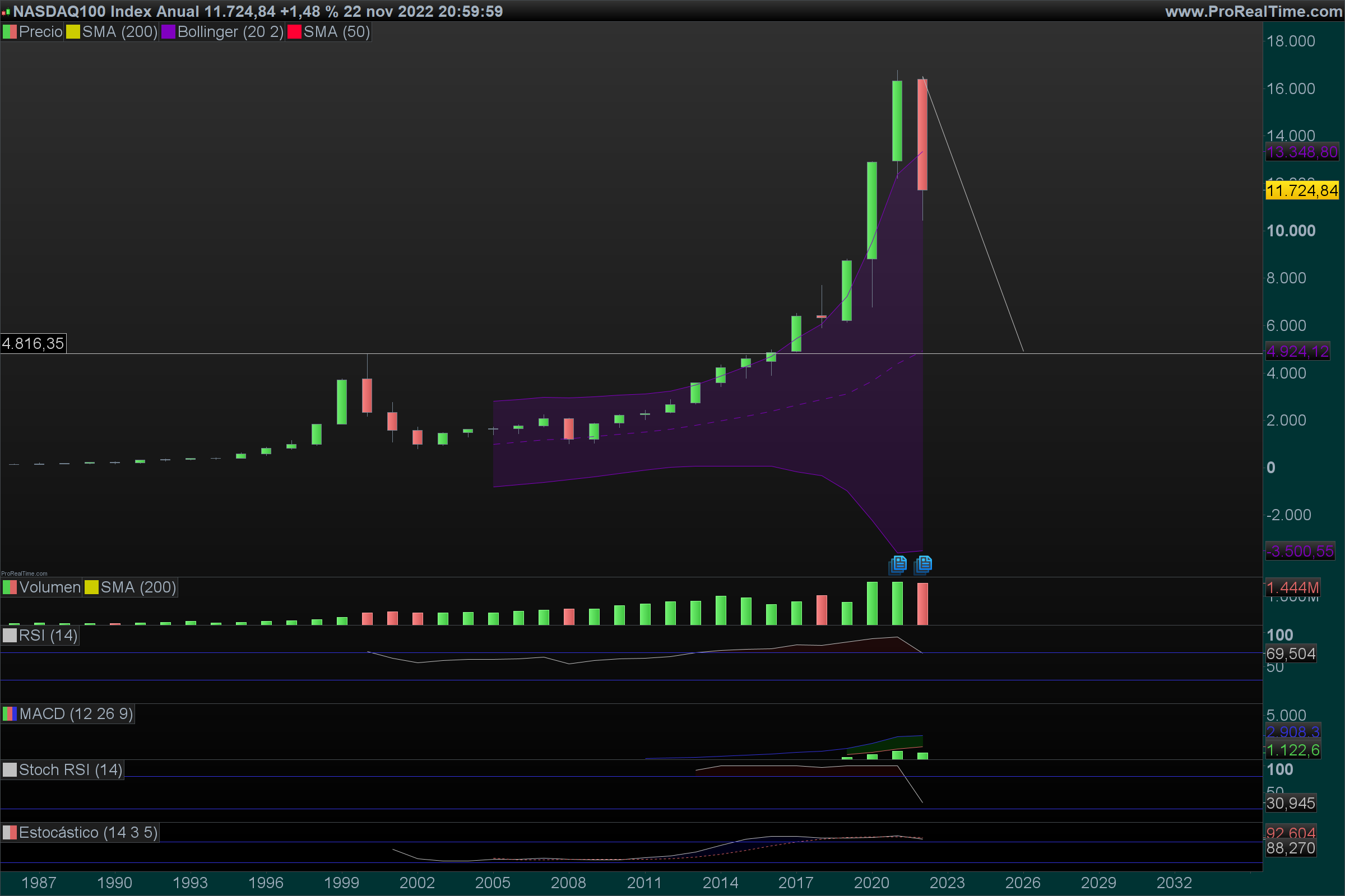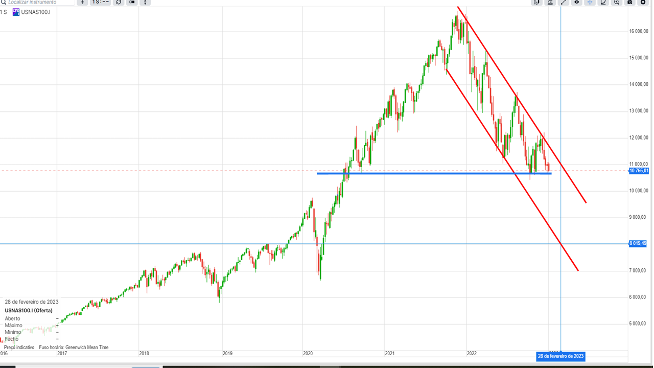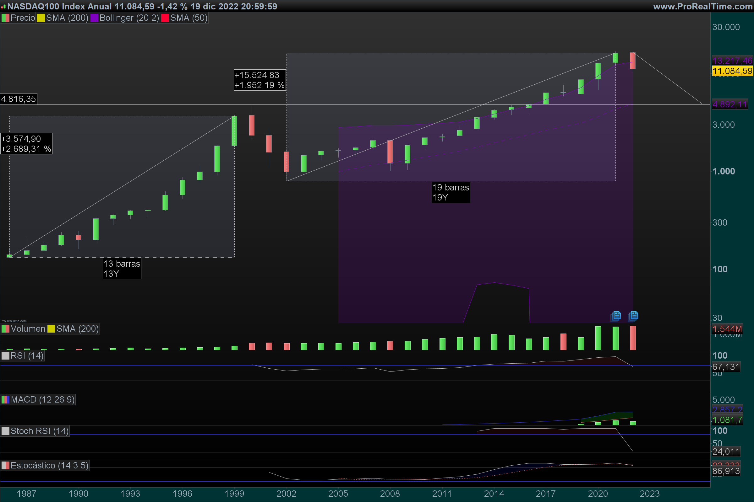 Relativo ao NASDAQ se continuar a descer ou se mantiver este nível a vela anual não vai ter correspondência em padrões de velas.