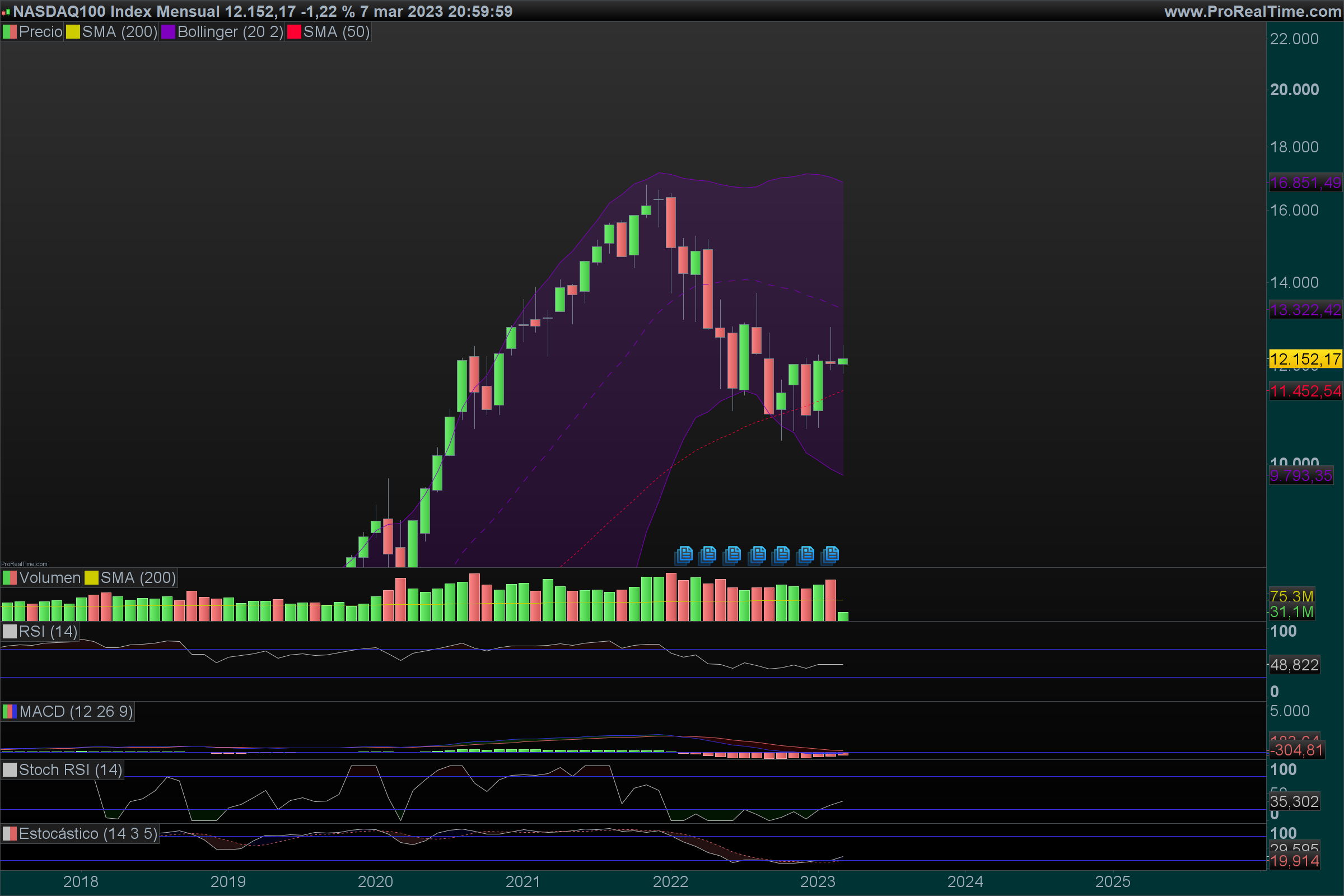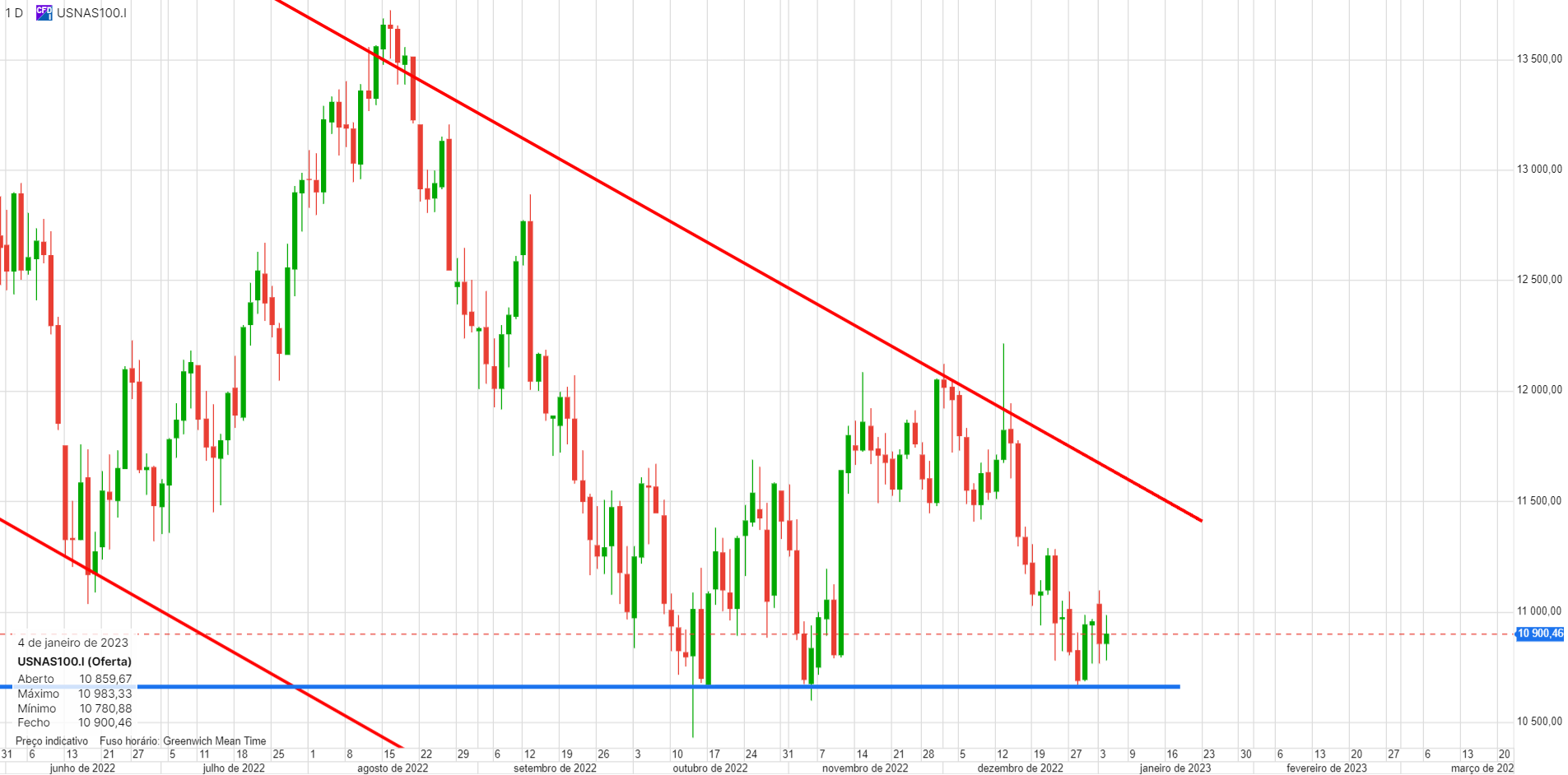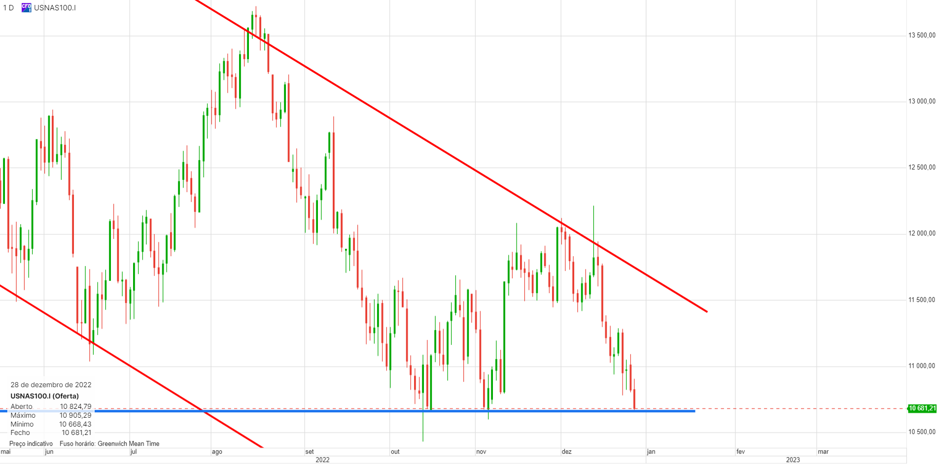 Relativo ao NASDAQ se continuar a descer ou se mantiver este nível a vela anual não vai ter correspondência em padrões de velas.