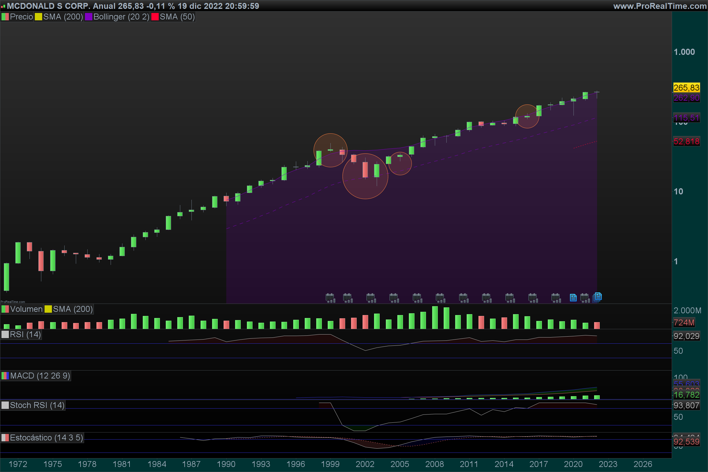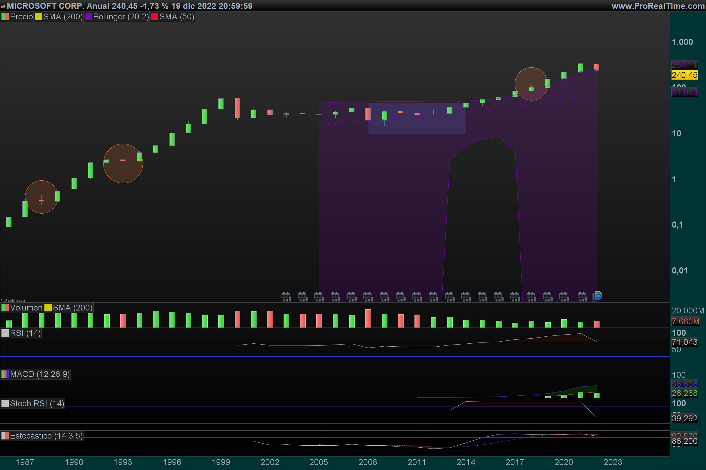 Sem lhe dar grande importância, por exemplo na MCD ou MSFT que tëm um longo histórico vemos vários casos de padrões de topo, fundo e continuação.