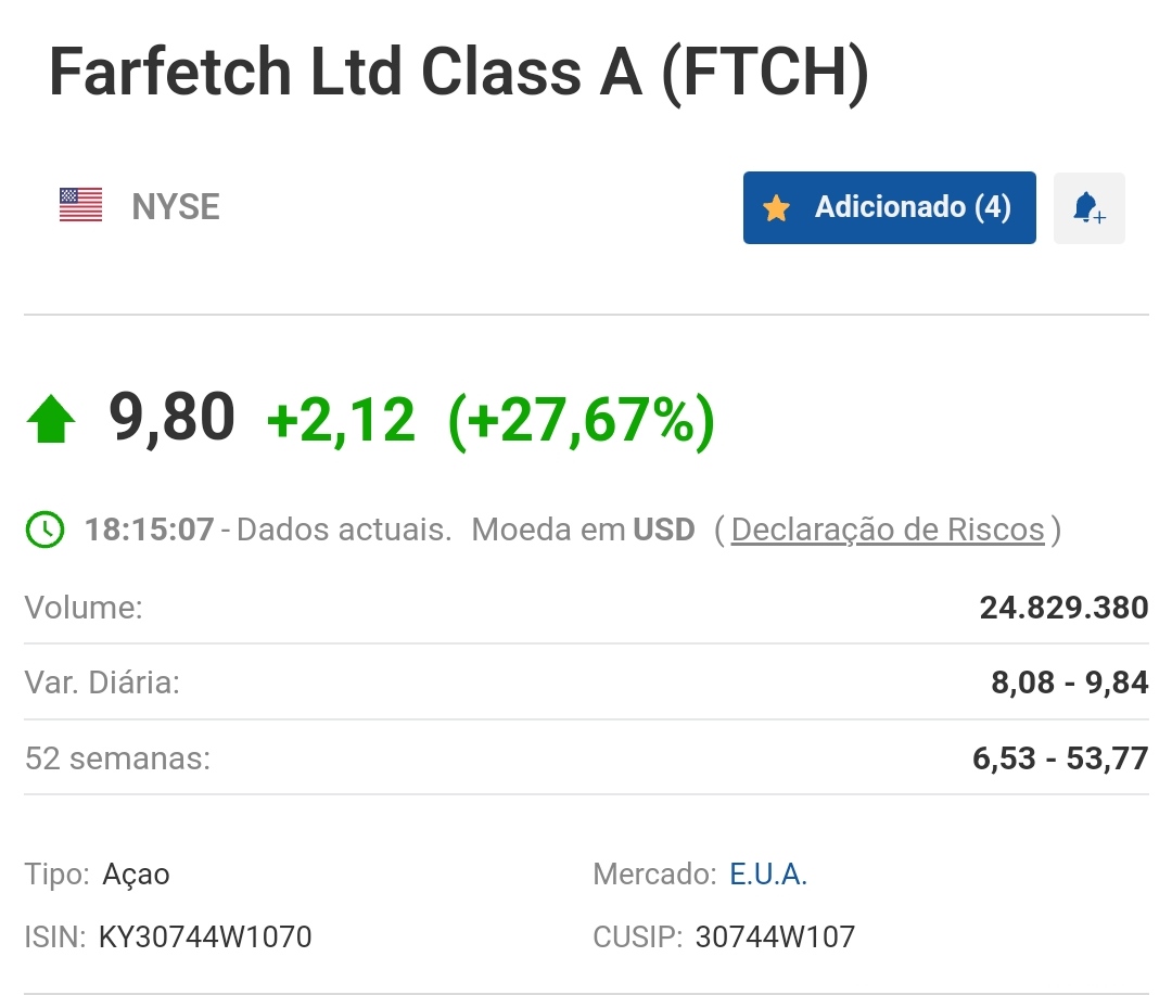 ricardmag Escreveu:Segundo alguns "analistas manhosos" é melhor fugir da farfetch antes que vá a zero.