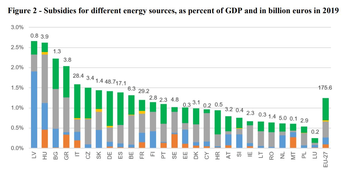 and 4% of the total energy subsidies. In 2020, an additional €2.7 billion were disbursed as