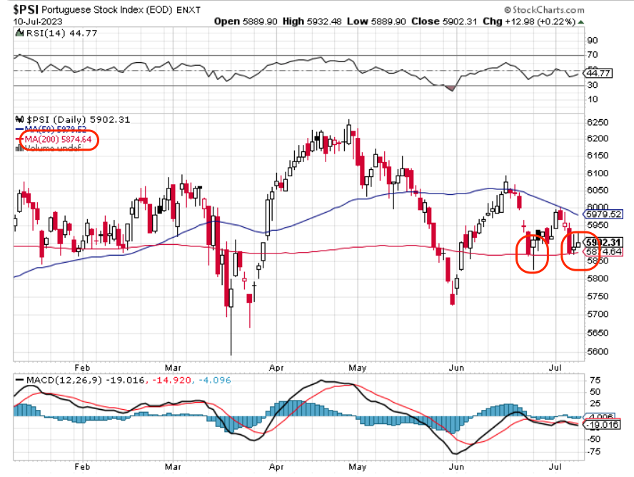 Não quero fazer comentários diários sobre a evolução da bolsa, mas hoje parece que a MA 200 funcionou como suporte, o que acontece às vezes em bull market.