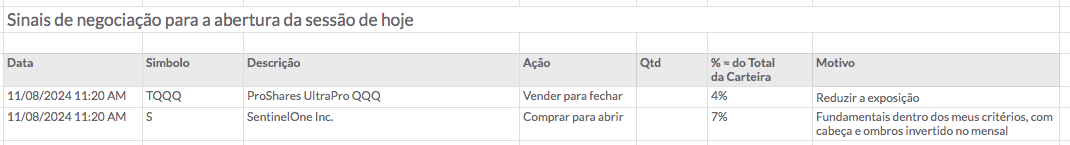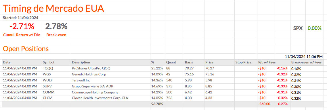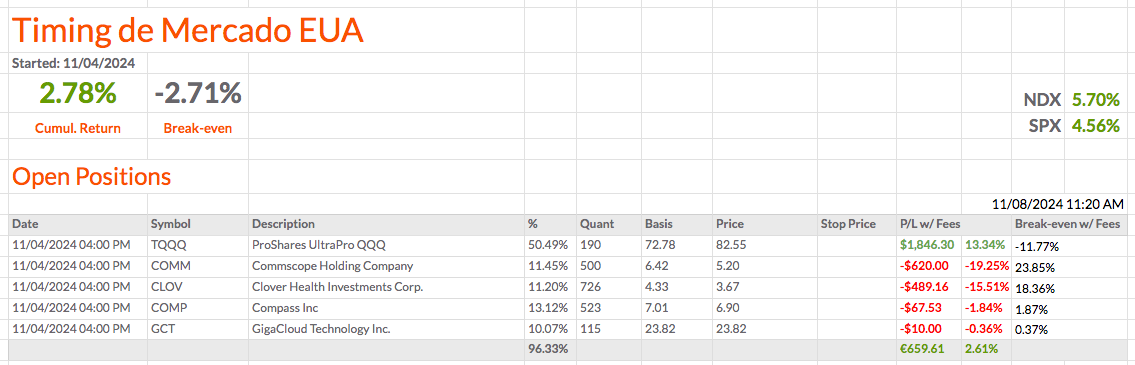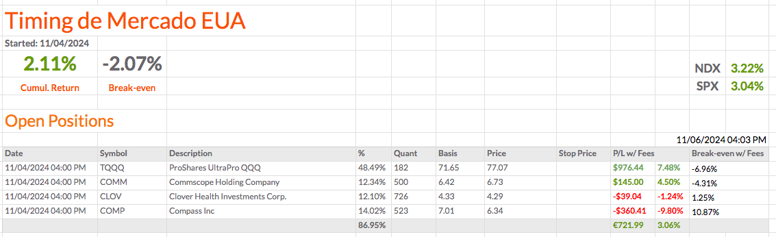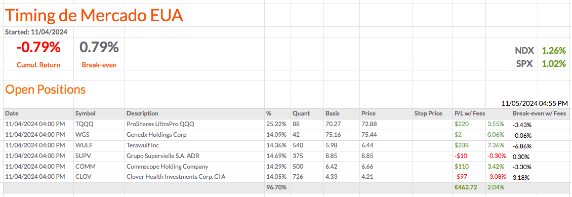 Vou fechar a WGS e comprar mais quantidades de TQQQ. Vou ficar com 3 ações e o TQQQ na carteira de Timing de Mercado EUA.