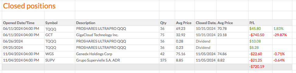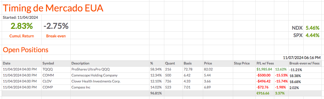 Vou também fechar a SUPV e comprar mais quantidades de TQQQ. Vou ficar com 4 ações em vez de 5.