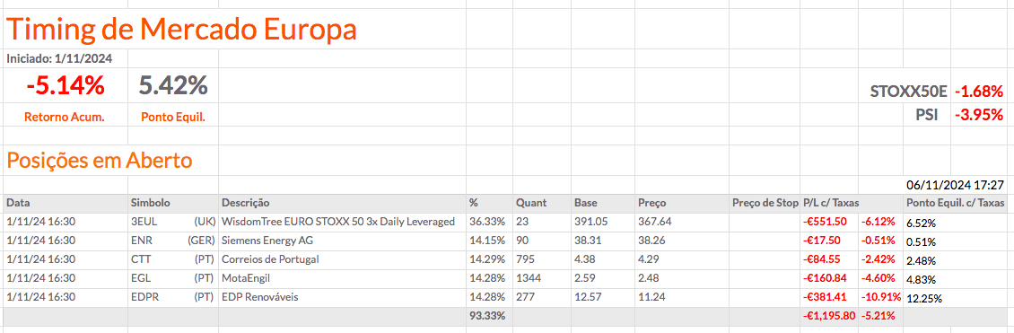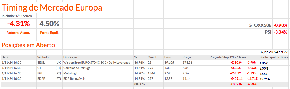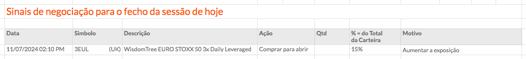 Na carteira de Timing de Mercado Europa, vou fechar a GNFT amanhã e comprar mais quantidades do 3EUL. Vou ficar com 4 ações e o 3EUL.