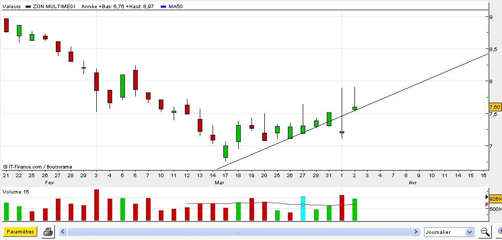 Na minha opinião, do que tenho acompanhado da Zon, creio que ela esta semana poderá baixar ligeiramente, e depois subirá em força, pelo menos até dia 15/05. Como vai pagar um dividendo global atractivo, é bem capaz de despertar o interesse.