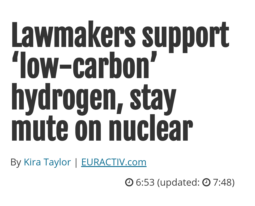 The European Parliament’s industry and energy committee passed a resolution on Monday (22 March) supporting hydrogen produced from “low-carbon” energy sources, including fossil gas with carbon sequestration. The motion stopped short, however, of mentioning nuclear as a potential energy source.