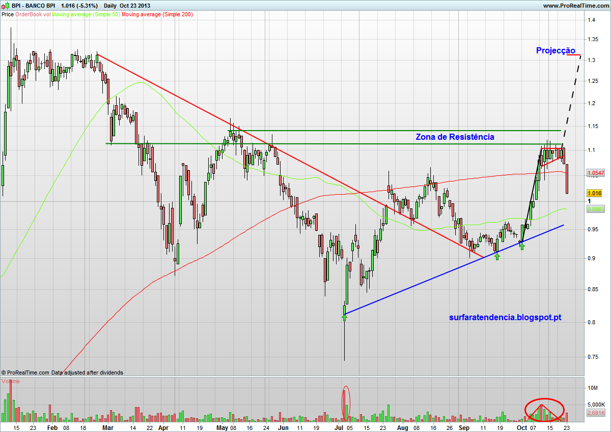 Na sessão de hoje a anterior resistência na zona dos 1,06€ serviu na perfeição como suporte, impulsionando a cotação para novos máximos, desta forma temos novo suporte para auxiliar a navegação:!: