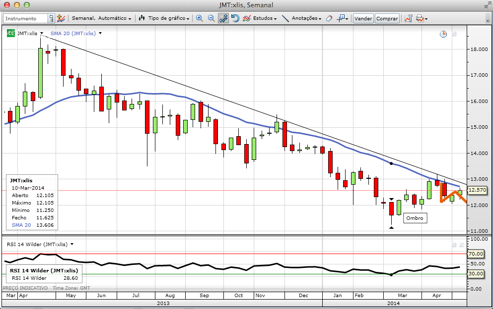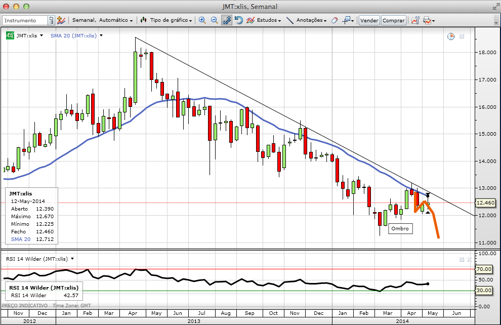 Ainda que, o caminho no médio prazo para a JMT seja para baixo, no curto prazo poderá existir um gap up acima do stop...
