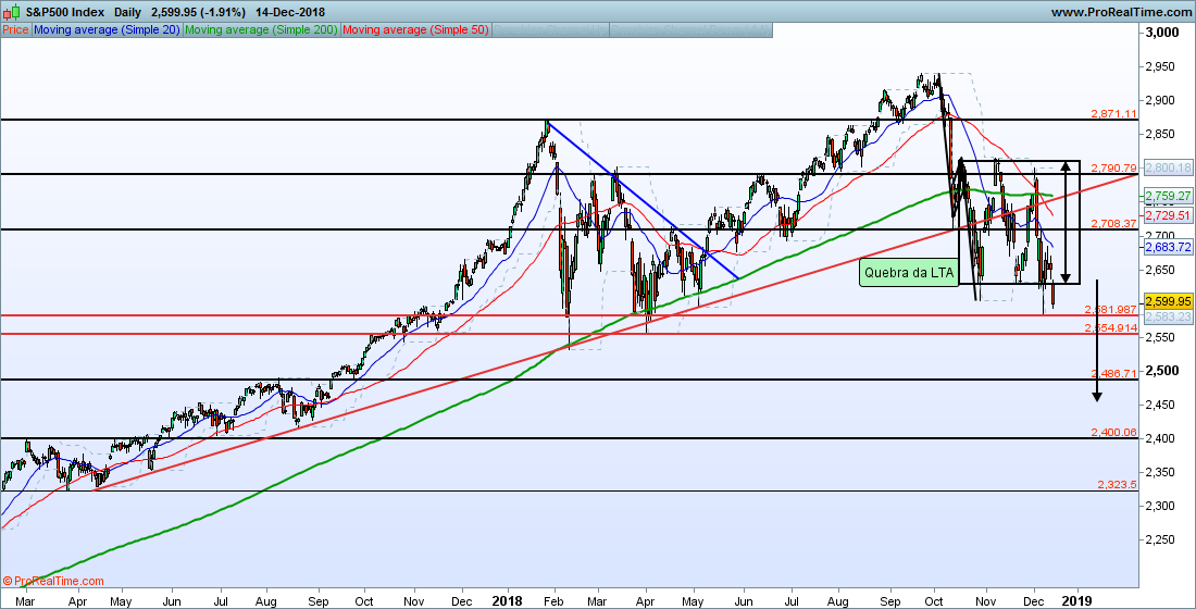SP500 assim como restantes índices Americanos confirmaram hoje que estão a negociar em canal com declive negativo.