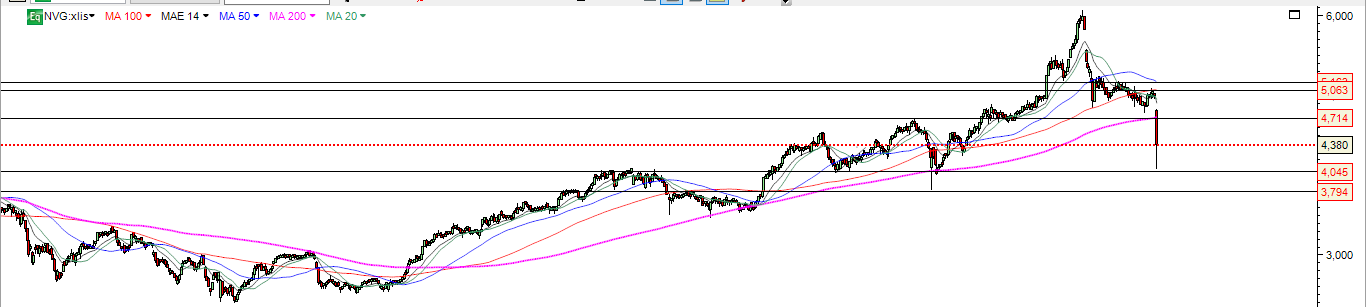 De manhã com a quebra dos 4.71 MM200 foi direta a zona suporte 4 euros