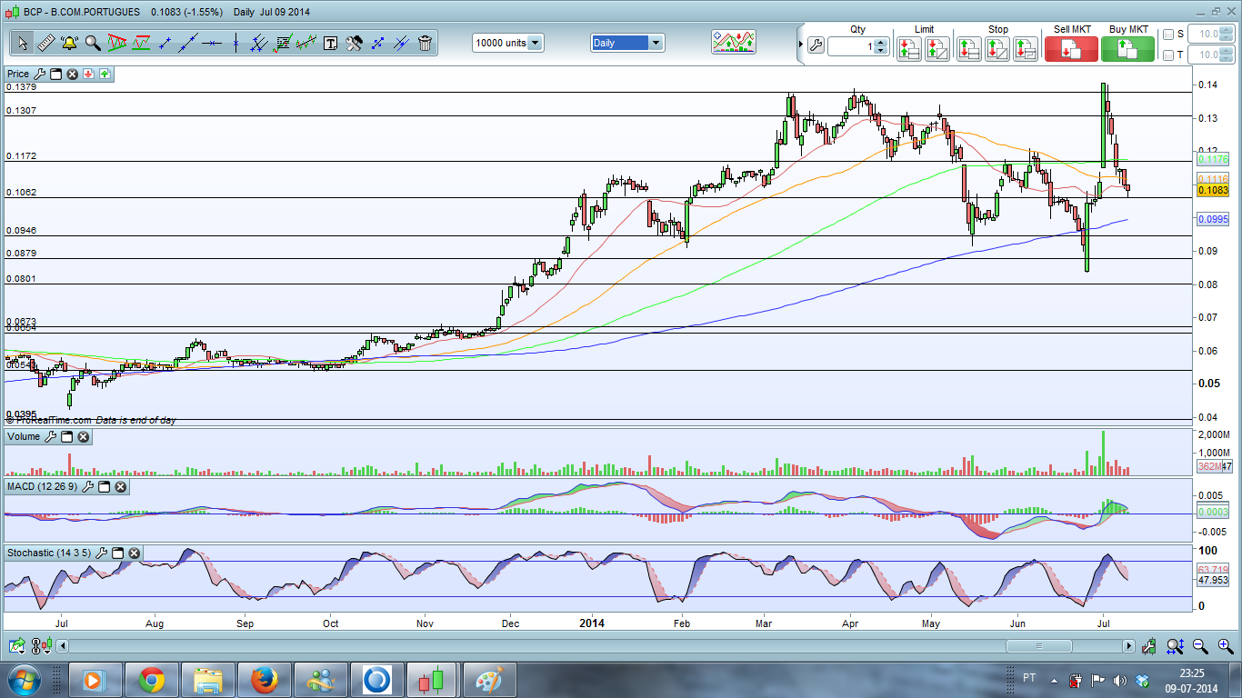 Pode estar alavancado longo ou curto em BCP via CFD's , Futuros, Warrants e factor certificates. As duas primeiras formas permitem ganhar muito ou perder ainda muito mais (factores temporais e de alavancagem puxados), logo só se devem escolher quando o potencial de retorno é igual ou superior a 75% (ex. Bes). Para warrants e factor certificates, a alavancagem vai de 2X a 8x, e portanto nunca põe em risco mais do que o capital lá colocado, mas também nunca atinge níveis de rentabilidade de 1000%. Estes últimos são ideais para situações de potencial de retorno igual ou superior a 60%, como a do BCP neste momento (em que a volatilidade pode pregar partidas, não queremos arriscar % muito, e não estamos seguros da evolução no curtissimo prazo).