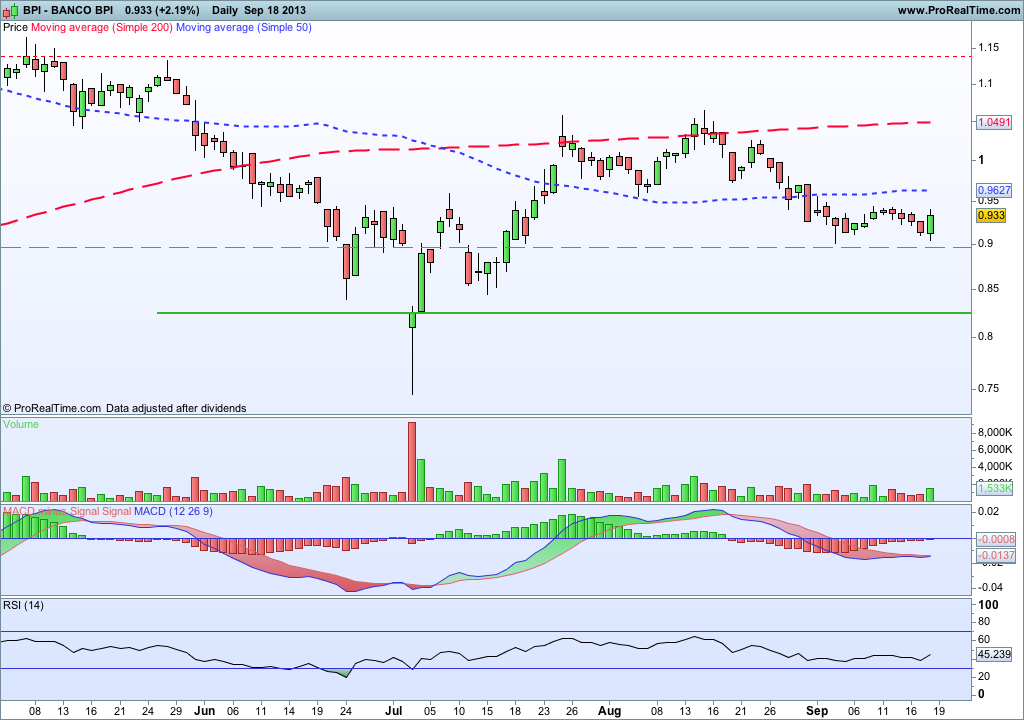 Se o BPI conseguir ultrapassar a neckline do gráfico o target é de, aproximadamente, 1,20 euros.