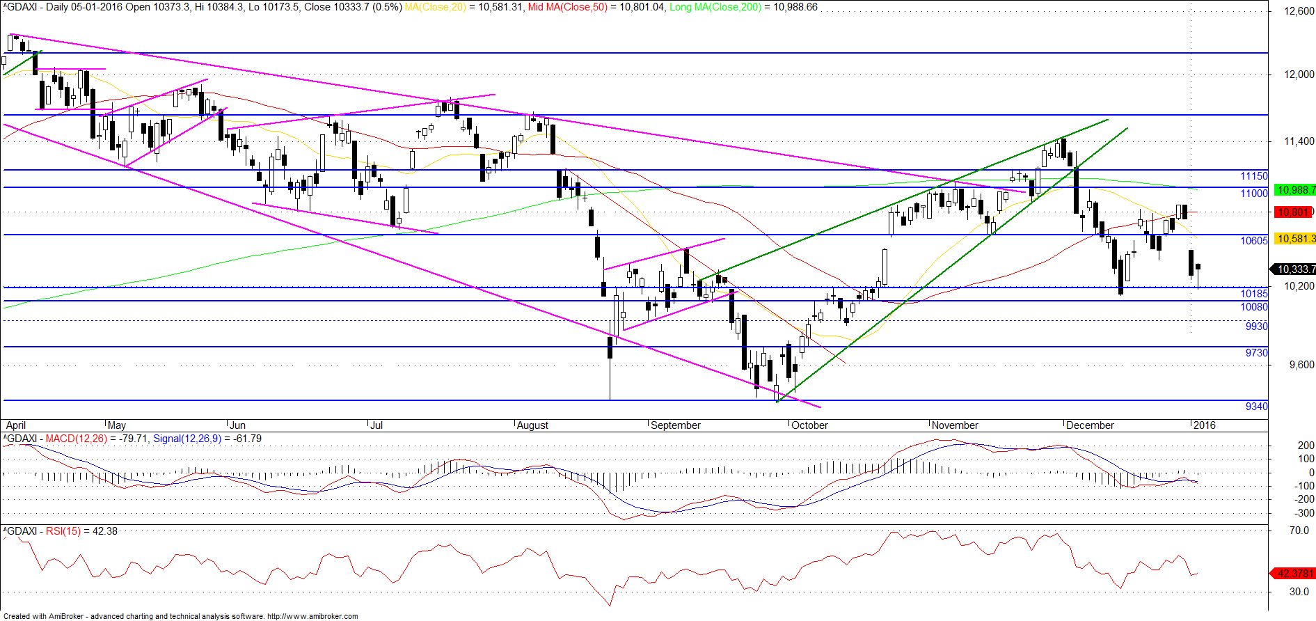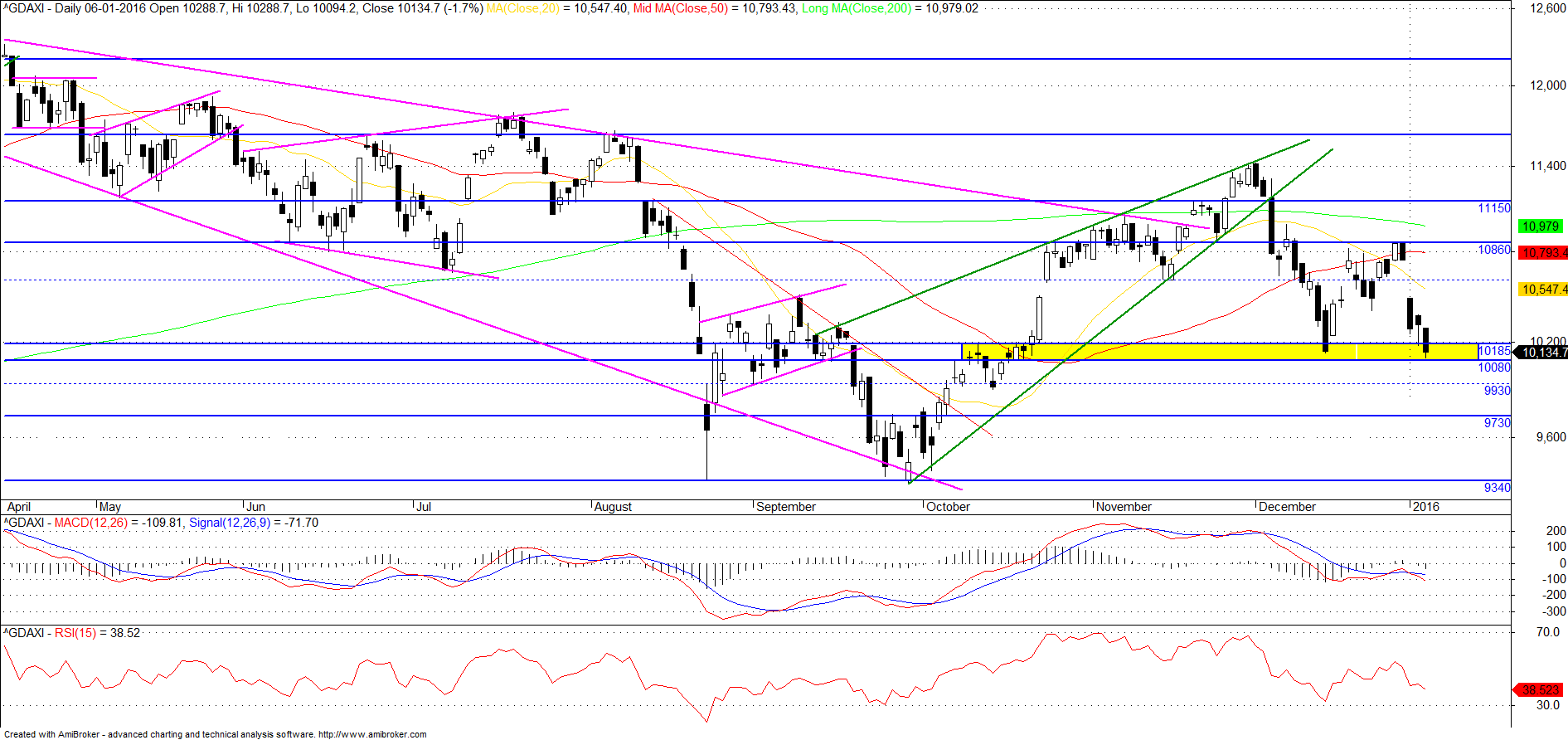 Presumo que após a abertura, dada a volatilidade, deverá haver uma tentativa de subida sem fazer higher highs. Se acontecer, aproveitar para meter curto. Se após abertura, o Dax for por aí abaixo tout court, sair após fazer lower low pois vai haver tentativa de recuperação.