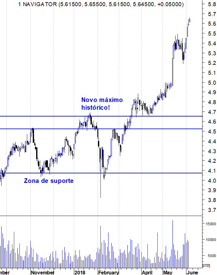 PT interessante para a Navigator, com um potencial de aproximadamente 6%, embora considere que caso o volume se mantenha e continue a não existir grande pressão vendedora, uma subida de 6% pareça ser pouca.