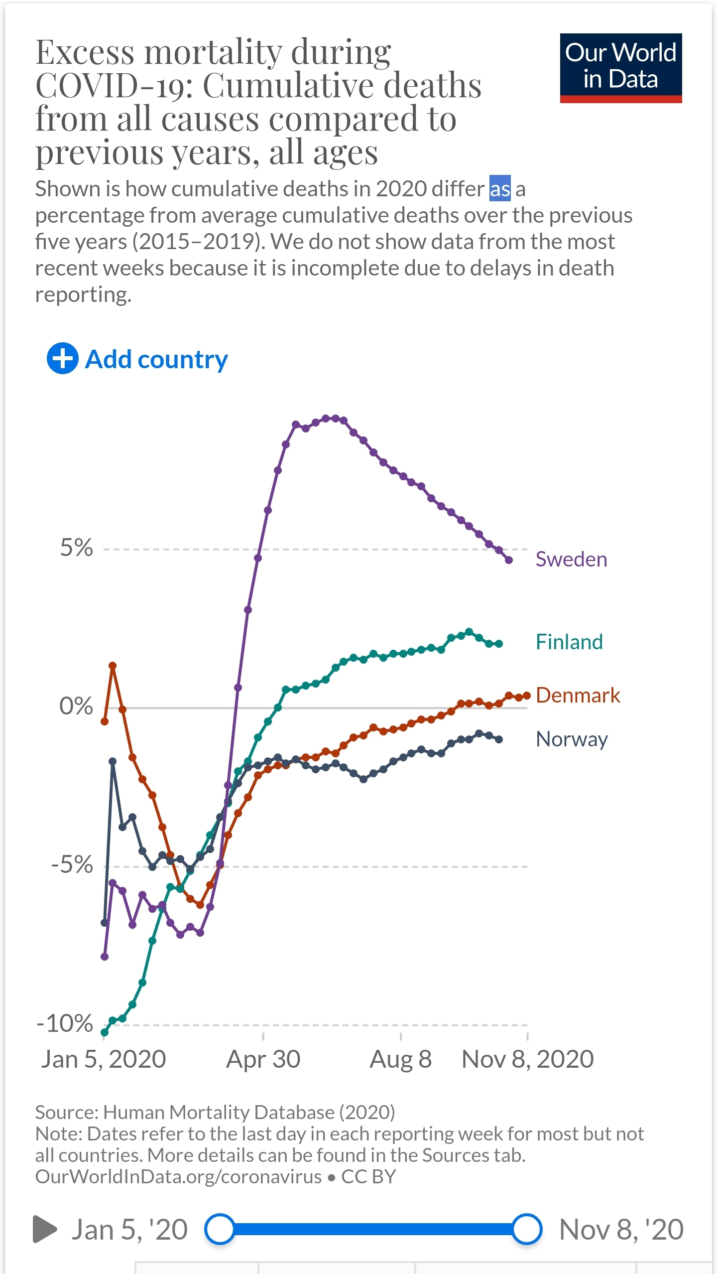 O ano ainda não acabou e a diferença já está muito acima do esperado para o total do ano. Amortalidade na Suécia está ligeiramente abaixo da média, deve ficar na média dos anos anteriores.