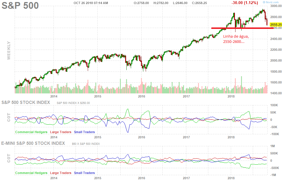 No gráfico semanal do SP500 , fechou a semana claramente negativa e muito abaixo da MM50 semanal , o que já não acontecia desde pelo menos o inicio de 2017 .
