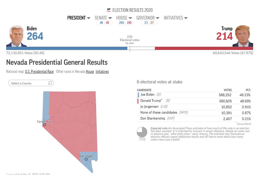 No caso do Nevada, eles pararam a contagem no fim do dia 3 e disseram logo que só retomavam hoje à tarde, por isso não ter havido alteração dos resultados até agora.