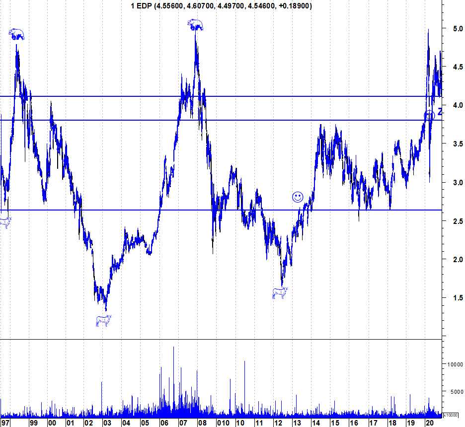 Passado quase nove anos dos chineses comprarem a EDP a pouco mais de 3€ (salvo erro), quando o mercado financeiro estava em baixa, em bear market e deprimido. Toda a gente chamava de "nabos" aos chineses porque cotava a menos de 2€ na bolsa e andavam a comprar a mais de 3€ ao Estado Português! Lembro perfeitamente!