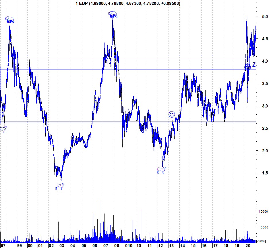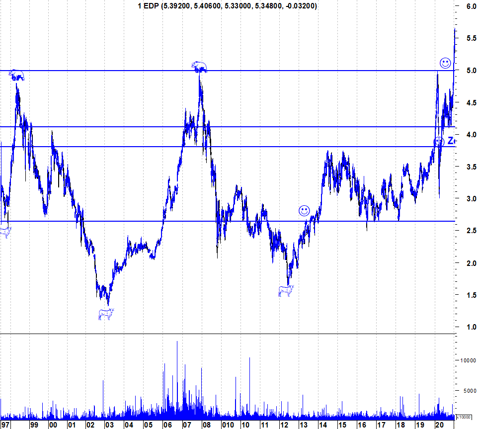 A EDP é um desses exemplos. Desde 2012 que a acção vive um “Bull Market”, com uma valorização superior a 250%. É verdade que, durante estes 8 anos, houve longos períodos em que a acção lateralizou, mas isso faz parte dos “Bull Markets”, momentos mais fulgurantes e outros de consolidação.