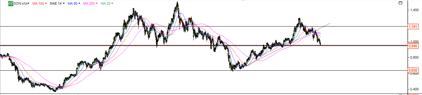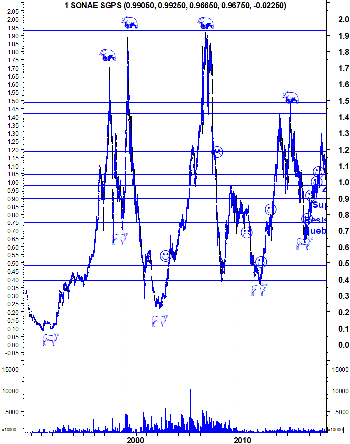 Pode parecer absurda e talvez seja atendendo aos fundamentais (se a Sonae vender um supermercado o dividendo poderá disparar), mas a quebra de 0.98, o volume e a força com que os vendedor lhe estão a dar por certo trará a Sonae para perto dos 0.90 numa primeira dose.