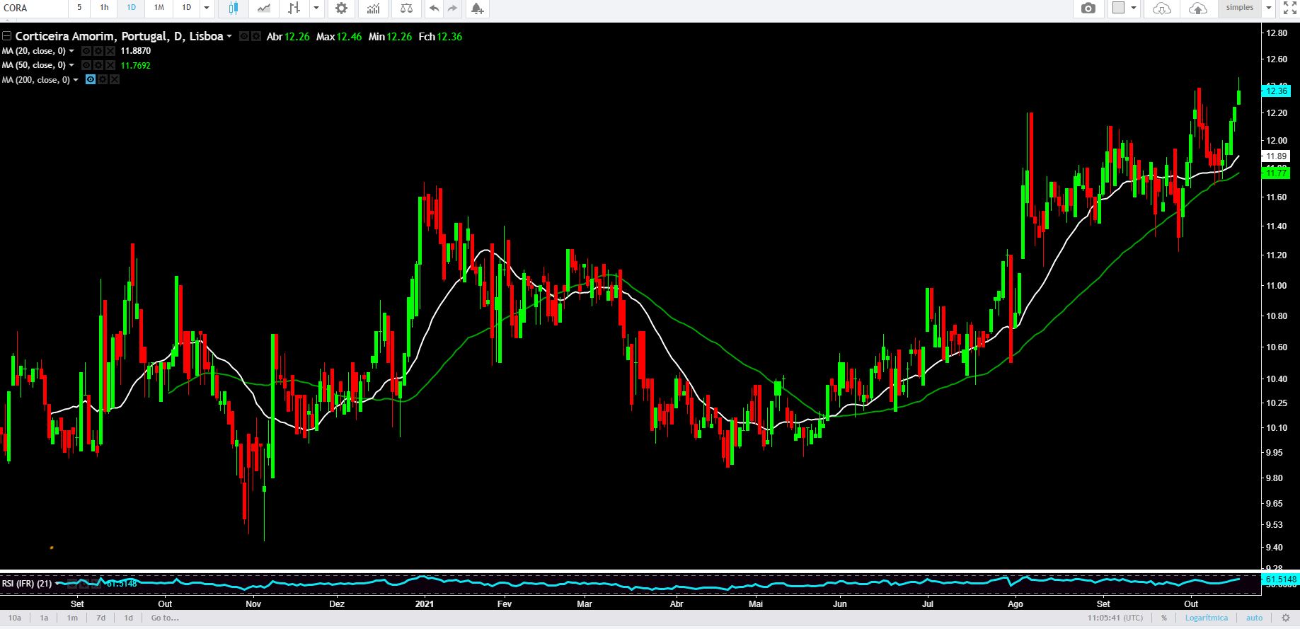 Hoje a Corticeira irá apresentar resultados. Serão, possívelmente, dos melhores resultados de sempre. A área dos isolamentos na construção deverá dar um excelente contributo nos resultados. O 3º e 4º Trimestres são historicamente, os melhores do ano. Vamos aguardar até logo para ver o veredito. É das empresas industriasi portuguesas que irá sentirm menos o aumento das matérias-primas, no entando, pode incrementar os aumentos nas vendas dos produtos finais.