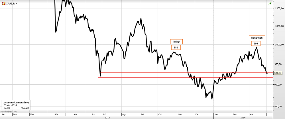 PS: O uunico trade no ouro em 2014 foi longo a 911, com piramidagem 3 para 1 a 927, cm venda total a 968 euros
