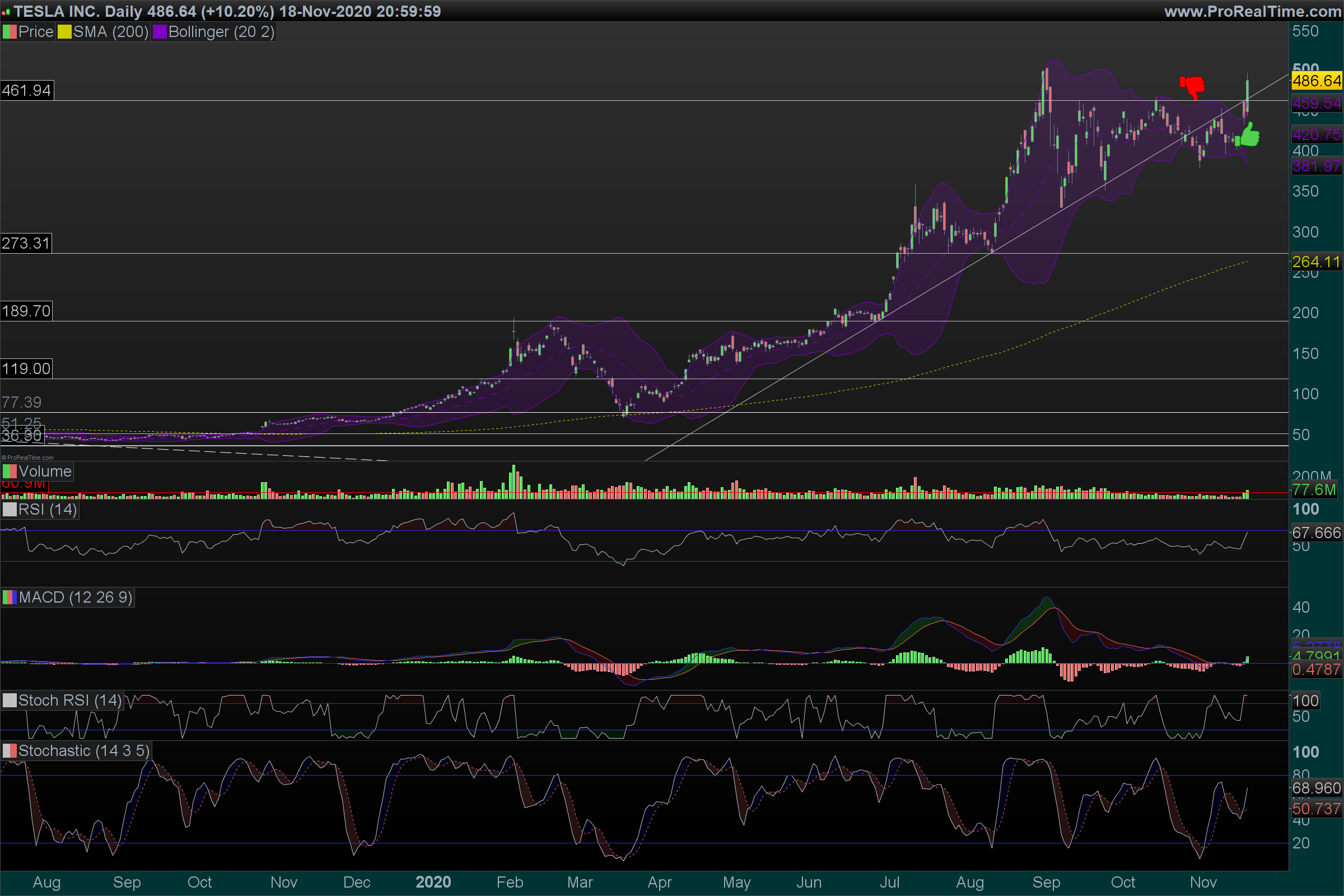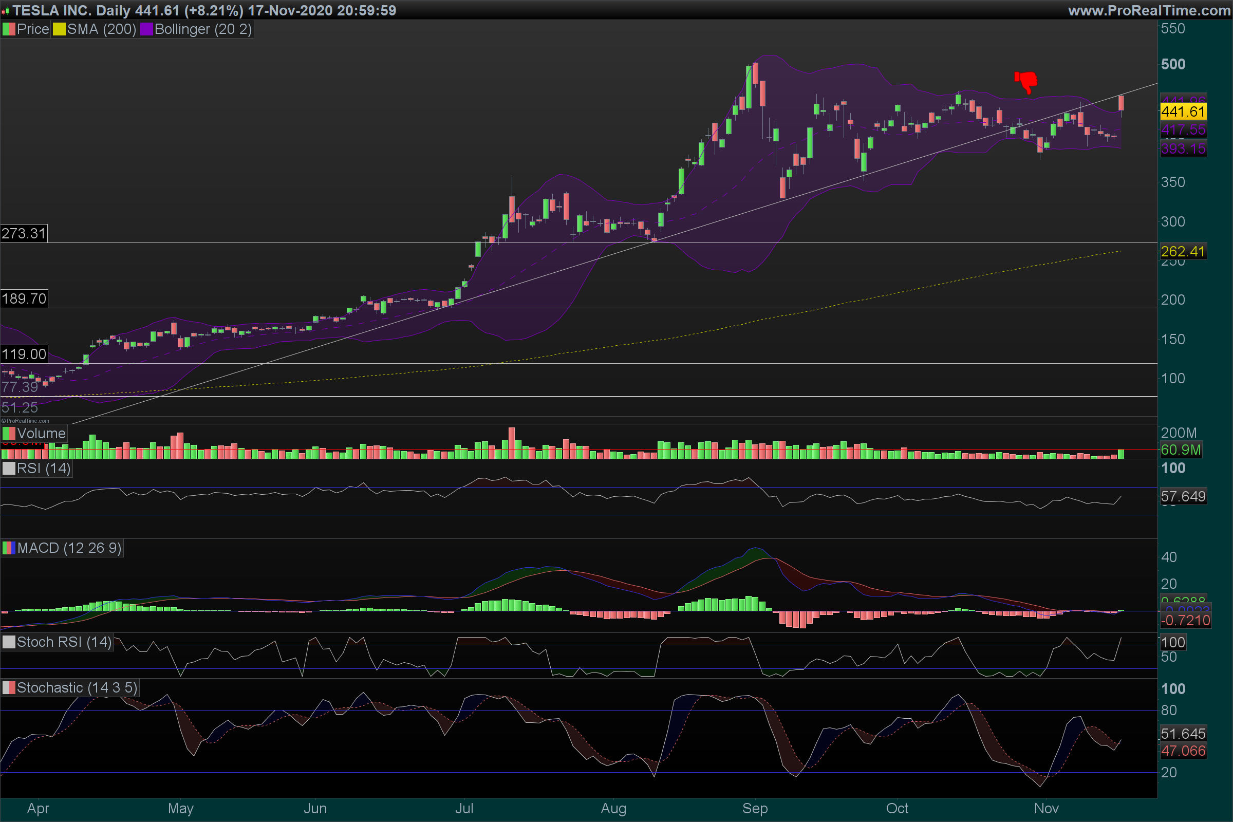 Tesla fará parte do SP500 a partir de 31 de Dezembro de 2020. As subidas de hoje rondam os 10%
